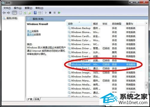 3.打开服务后一直向下找,找到“windows firewall”一项,如图所示