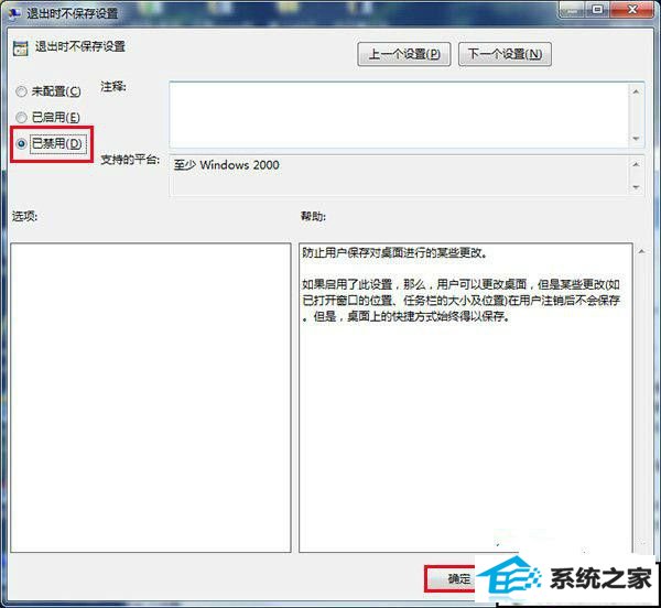 3、左键双击打开退出时不保存设置选项卡,接着再左键单击已禁用和“应用、确定”按键,如图: