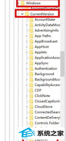 3、依次再打开 Microsoft—>win—>CurrentVersion—>Explorer。