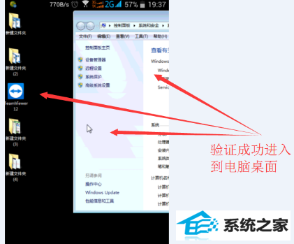 通过缩放手机屏幕,可实现对电脑桌面的缩放,如图所示。其他功能可自行摸索,通过手机的返回键或者是Home键可断开远程,回到手机屏幕。
