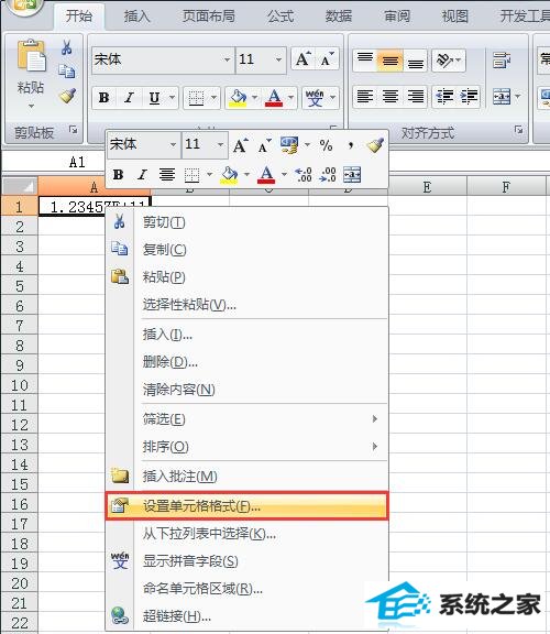 3、右击选择输入数字的单元格,选择“配置单元格格式”。