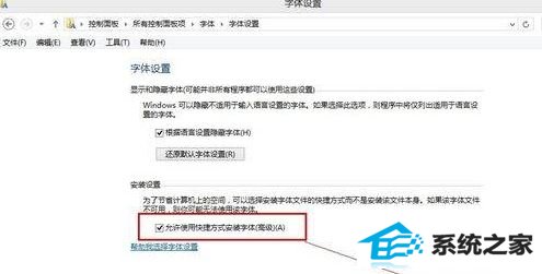 5、在打开如下图所示的www.xiazaima.com界面,选中“允许使用快捷方式安装字体(高级)(A)”,然后点击“确定”。